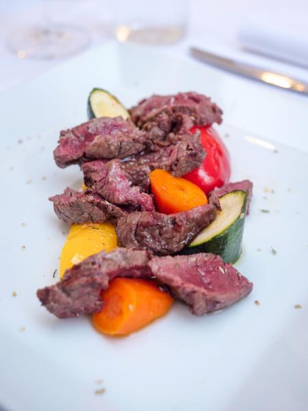 La pausa pranzo viene servita sotto al portico esterno nella stagione estiva e all'interno in quella invernale