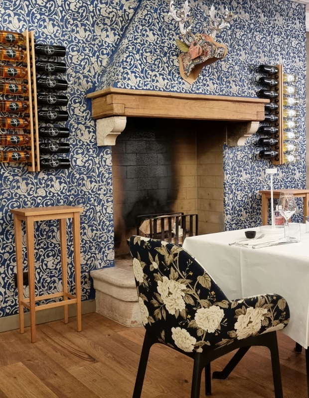 La sala, interamente realizzata con materiali pregiati: il pavimento in castagno, rivestimenti in calce e il soffitto in legno di abete sbiancato.